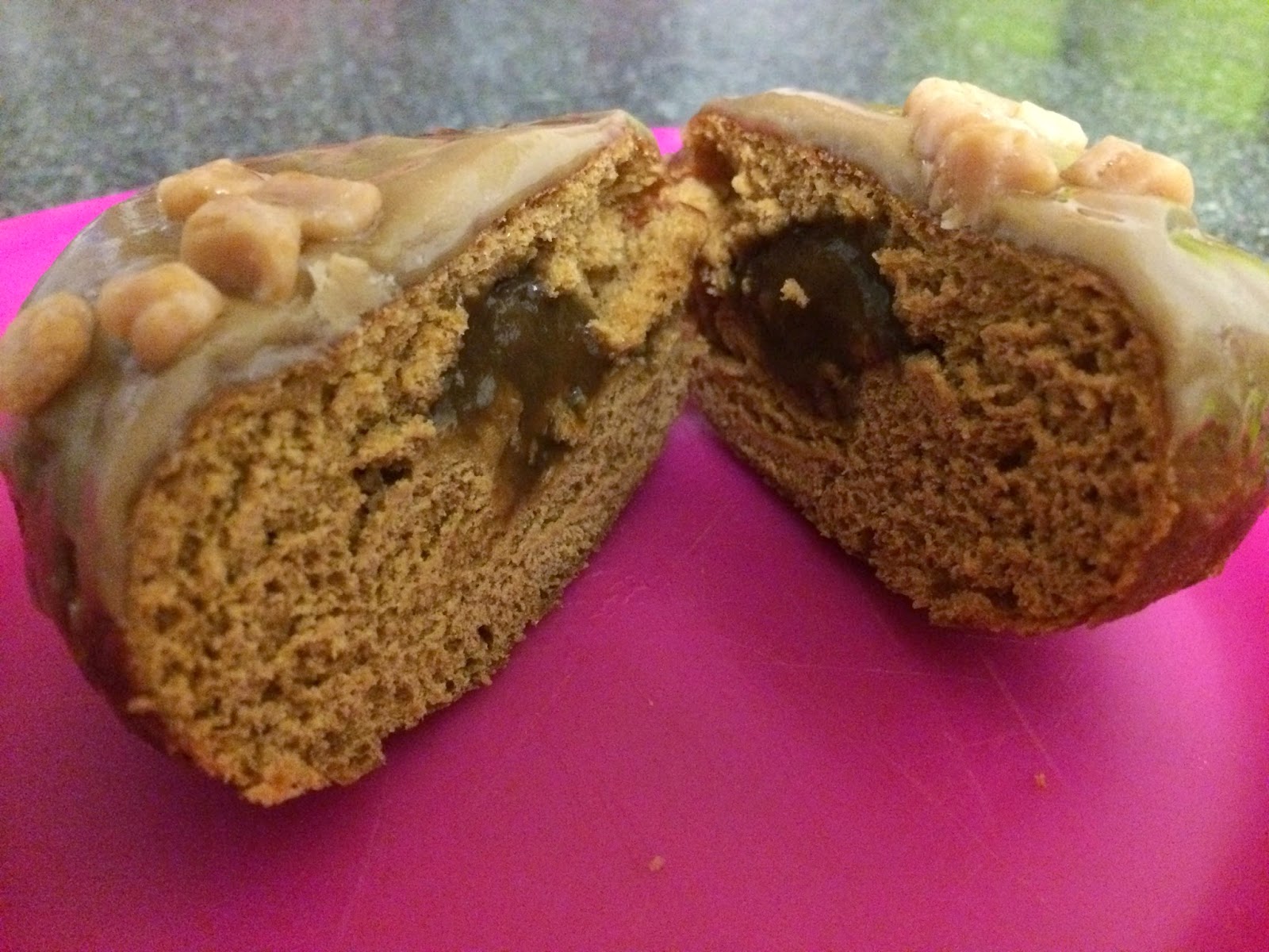 Well, these certainly look the part. A nice frosty glazing, topped with salted caramel flavoured fudge pieces, and the dough is full of salted caramel flavour filling. Yes, "flavoured", it's not quite the real stuff, which is a little baffling considering it's probably the right consistency. But hey, gotta keep costs down I guess. The filling isn't actually bad. It's thick and goopy, much like you'd expect the real thing to be, and it's certainly flavoursome, very sweet with a slight salty kick. The fudge pieces are great as well, soft and chewy and also packed with flavour. The dough, however, is where I wasn't too convinced. It's a very heavy, dark dough, which is certainly in keeping with the dark salted caramel theme. But it's a little too stodgy, and the heaviness left a bit of a bitter taste in my mouth which detracted from the sweetness of the salted caramel elements. This is certainly a filling doughnut, and I certainly don't regret buying them, but a lighter dough would have made for a much tastier experience in my opinion. These may not be perfect, but it's another great bakery idea from Tesco that's worth a try.